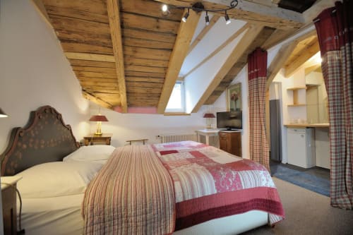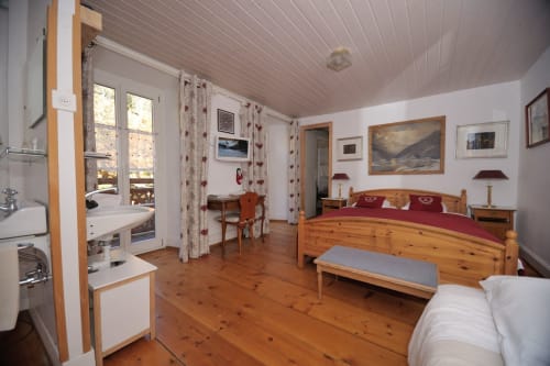 12 chambres de 17m2 avec balcon, un grand lit double 160 x 190 , lavabo et douche 1m x 1m , WC fermés avec fenêtre avec vue, décoration montagne.